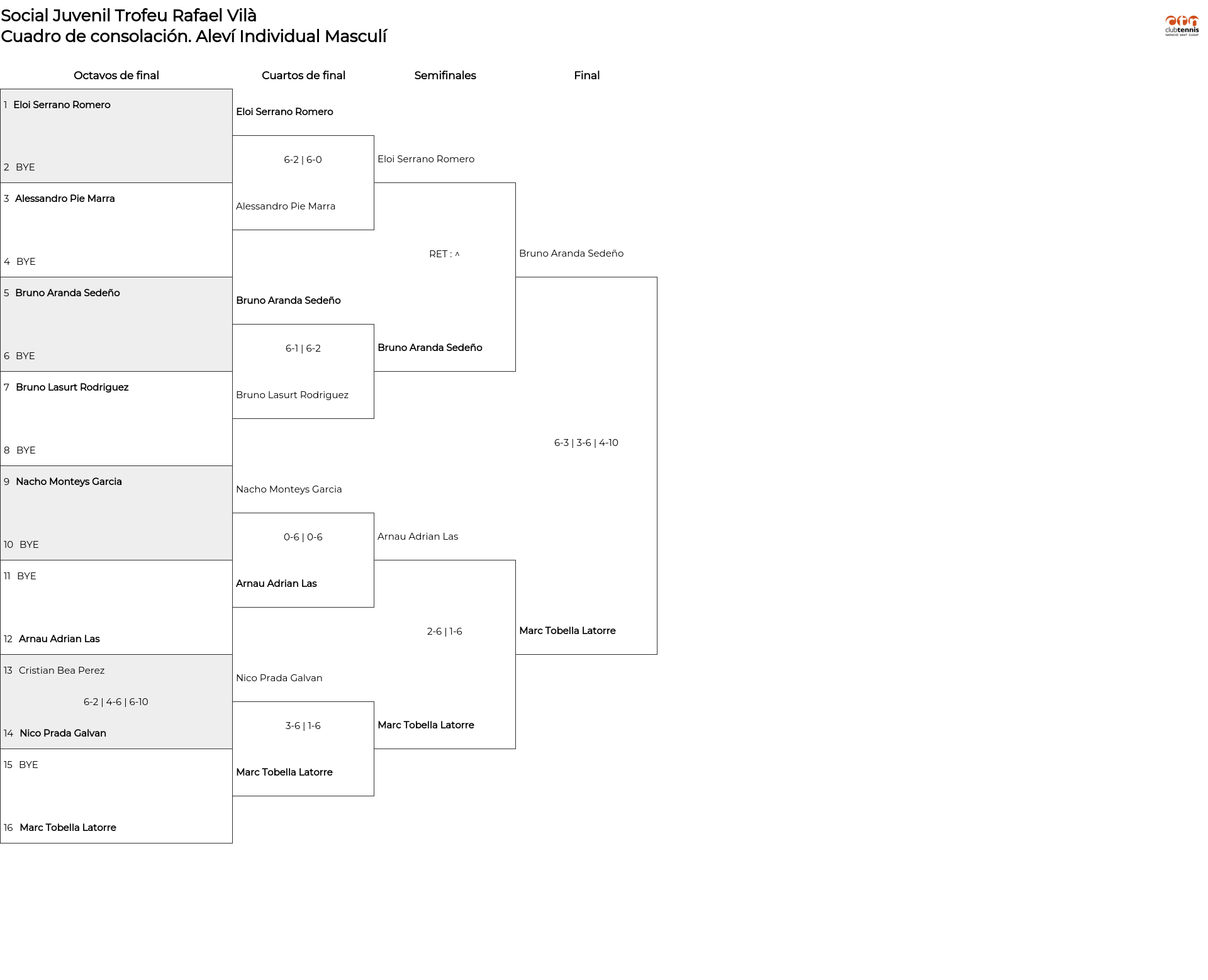 Cuadro de consolación Aleví Individual Masculí