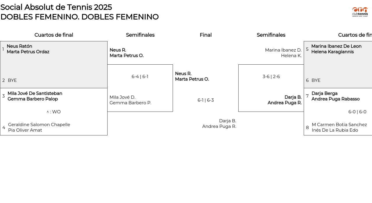DOBLES FEMENINO . From the 02/14/2025, 12:00 AM to the 04/30/2025, 11:55 PM